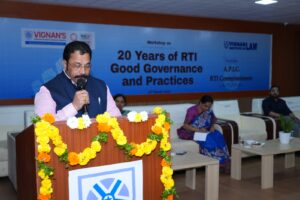 గుంటూరు జిల్లా వడ్లమూడి విగ్నాన్ ఇన్స్టిట్యూట్ ఆఫ్ లా లో నిర్వహించిన ఆర్టీఐ చట్టానికి 20 సంవత్సరాలు మంచి పాలన మరియు ఉత్తమ పద్ధతు అనే అంశంపై జరిగిన వర్క్షాప్కు ఆంధ్రప్రదేశ్ రాష్ట్ర సమాచార కమీషనర్ పి ఎస్ నాయుడు ముఖ్య అతిధిగా హాజరయ్యారు.