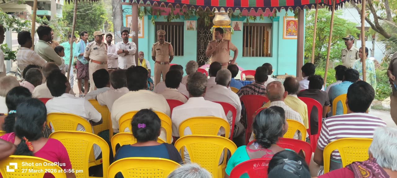 సీఐ తిలక్, ఎస్ఐ జగన్ ఆధ్వర్యంలో జరిగిన ఈ సమావేశంలో గ్రామ ప్రజలకు సైబర్ మోసాల నుంచి ఎలా జాగ్రత్తపడాలి, రోడ్డు భద్రతా నియమాలను ఎలా పాటించాలి, ప్రజల భద్రత కోసం ఏర్పాటు చేసిన కెమెరాల ఉపయోగం గురించి తెలియజేశారు.