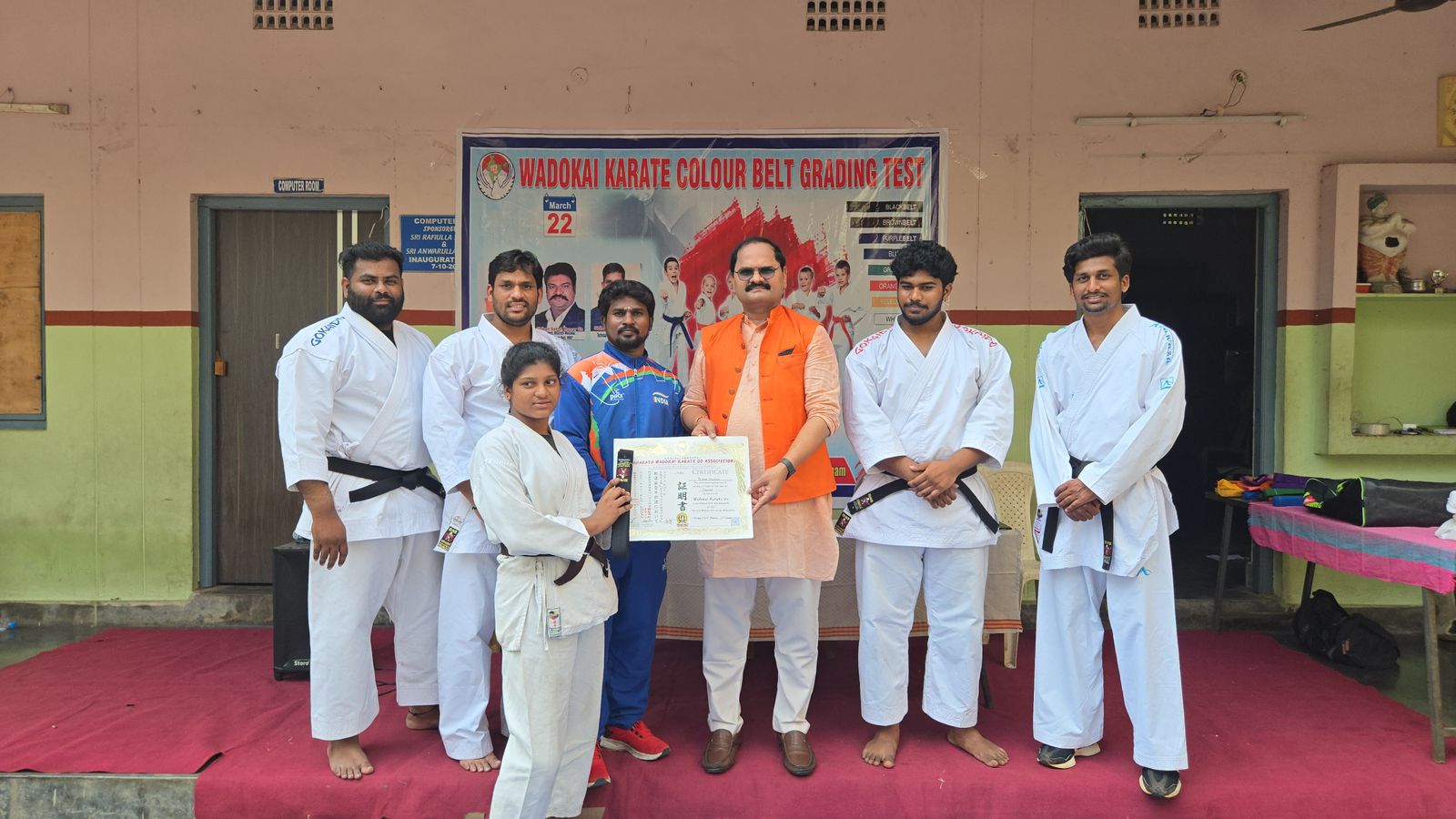 ఆటోనగర్ ఒక ప్రైవేటు స్కూల్ లో వెడాకాయ్ కరాటే డు అసోసియేషన్ విశాఖ అధ్యక్షుడు రాము మాస్టర్ ఆధ్వర్యంలో కరాటే గ్రేడ్ టెస్ట్ నిర్వహించారు. ముఖ్య అతిథిగా బిజేపి రాష్ట్ర మీడియా పేనలిస్ట్ మరియు గాజువాక ఇంచార్జ్ కరణంరెడ్డి నరసింగరావు పాల్గొన్నారు. గ్రేడ్ టెస్టులో గెలుపొందిన క్రీడాకారులకు సర్టిఫికెట్లు బెల్టులు పంపిణీ చేసి అభినందించారు. ఈ సందర్భంగా కేఎన్ఆర్ మాట్లాడుతూ కరాటే శిక్షణ ద్వారా విద్యార్థులకు ఆత్మవిశ్వాసంతో పాటు ఆత్మరక్షణకు దోహదపడుతుందని అన్నారు. ప్రతి రోజు ఒక గంట కరాటే నేర్చుకోవడం ద్వారా మానసిక ఉల్లాసాన్ని, ఆరోగ్యాన్ని పొందవచ్చు అని అన్నారు. క్రీడల్లో రాణిస్తే ఉన్నత చదువులు, ఉద్యోగాలు వస్తాయని మంచి భవిష్యత్తు ఉంటుందని అన్నారు. కార్యక్రమంలో సీనియర్ కోచ్లు కిషోర్,గోవర్ధన్, అగస్త్య, వంశీ తదితరులు పాల్గొన్నారు.