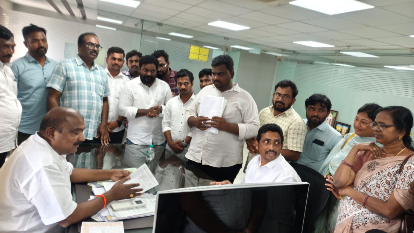 విజయవాడ గృహ నిర్మాణ సంస్థ కార్యాలయం గంగవరంలో మంగళవారం బోర్డ్ సమావేశం నిర్వహించారు. ఈ సమావేశంలో హౌసింగ్ మేనేజింగ్ డైరెక్టర్ పి.అరుణ్ బాబు తో కలిసి రాష్ట్ర హౌసింగ్ కార్పొరేషన్ చైర్మన్, అనకాపల్లి పార్లమెంట్ తెలుగుదేశం పార్టీ అధ్యక్షుడు బత్తుల తాతయ్య బాబు పాల్గొన్నారు. ఈ సందర్భంగా గృహ నిర్మాణాలపై ఆయన సమీక్ష నిర్వహిస్తూ..