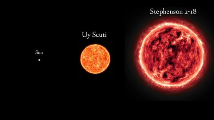 స్టీఫెన్సన్ 2-18 ఒక రెడ్ సూపర్ జెయింట్ రకానికి చెందిన నక్షత్రం. దీని పరిమాణం ఊహకందని రీతిలో ఉంటుంది. ఈ నక్షత్రం వ్యాసార్థం సూర్యుని కంటే సుమారు 2,150 రెట్లు పెద్దది. దీని లోపల దాదాపు 10 బిలియన్ల సూర్యులను ఇమడ్చవచ్చు. అంటే మన సూర్యుడు ఒక చిన్న బిందువులా కనిపిస్తాడు. ఒకవేళ ఈ నక్షత్రాన్ని మన సౌర కుటుంబం మధ్యలో ఉంచితే, ఇది బుధుడు, శుక్రుడు, భూమి, కుజుడు, బృహస్పతి మరియు శని గ్రహాల కక్ష్యలను కూడా దాటి విస్తరిస్తుంది. దీని అంచులను చేరుకోవడానికి కాంతికి కూడా చాలా సమయం పడుతుంది.