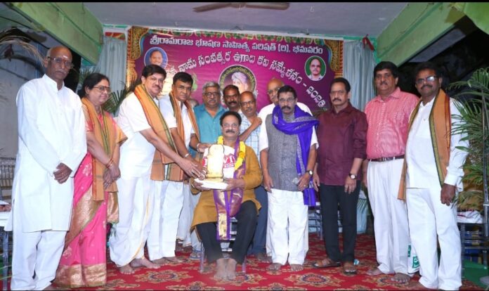 శ్రీరామరాజ భూషణ సాహిత్య పరిషత్ ఆధ్వర్యంలో భీమవరం శ్రీమహిషాసుర మర్ధిని భీమేశ్వర స్వామి దేవస్థానంలో చేపట్టిన ఉగాది కవి సమ్మేళనం అందరినీ ఆలోచింపజేసింది. కవి కువలయ శీతకారుల బ్రహ్మశ్రీ కందుకూరి రామకృష్ణ సూర్యనారాయణ, రసరాజు, ఇందుకూరి వెంకట లక్ష్మీపతిరాజు, డా జి రామకృష్ణంరాజు, బ్రహ్మశ్రీ కడిమిళ్ళ వరప్రసాద్ గురు సహస్రావధాని, డా కోరుకొండ సుజాత దేవి, చిలకమర్తి సుబ్రహ్మణ్యశాస్త్రి, సరికొండ నరసింహరాజు లు మధురమైన కవిత్వం తో సాహితీ ప్రియులను అలరించారు. ఆద్యంతమూ వారి కవితలు సదస్యులను కట్టిపడేశాయి. డా ముదునూరి గోపాల కృష్ణంరాజు అధ్యక్షతన విశ్రాంత ఐటి డైరెక్టర్ వెలమకన్ని రాజేంద్ర కుమార్ (హైదరాబాద్), మేళం జగదీశ్వరి, డా వేగేశ్న ప్రవీణ కుమారి, డా భూపతిరాజు ఐశ్వర్య, డా కట్రెడ్డి మౌనికలు జ్యోతి ప్రజ్వలన చేసి కార్యక్రమాన్ని ప్రారంభించారు. పరిషత్ అధ్యక్ష, కార్యదర్శులు నడింపల్లి వెంకట్రామరాజు, రాయప్రోలు భగవాన్, భట్టిప్రోలు శ్రీనివాసరావు, రాయప్రోలు శ్రీనివాసమూర్తి మాట్లాడుతూ తెలుగు సంప్రదాయాలను, తెలుగు మూలాలను మర్చిపోకుండా ప్రతి ఏడాది వేడుకలను నిర్వహిస్తున్నామని, ప్రజలందరూ సుఖ సంతోషాలతో సిరి సంపదలతో తూలతూగాలని అన్నారు. కార్యక్రమంలో సాహిత్య పరిషత్ సభ్యులు మంతెన రామ్ కుమార్ రాజు, బొండా రాంబాబు, నడింపల్లి మహేష్, పేరిచర్ల లక్ష్మణ వర్మ, చుక్కన నాని, సుందరం, స్వామి పాల్గొన్నారు.